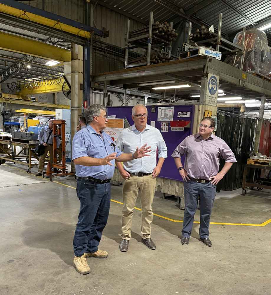 The visit was then mentioned in Question Time by Prime Minister Scott Morrison who gave a shout out to Maryborough’s Global Manufacturing Group and the Rheinmetall NIOA forging plant as examples of where our Government is working with business and industry to create local jobs.