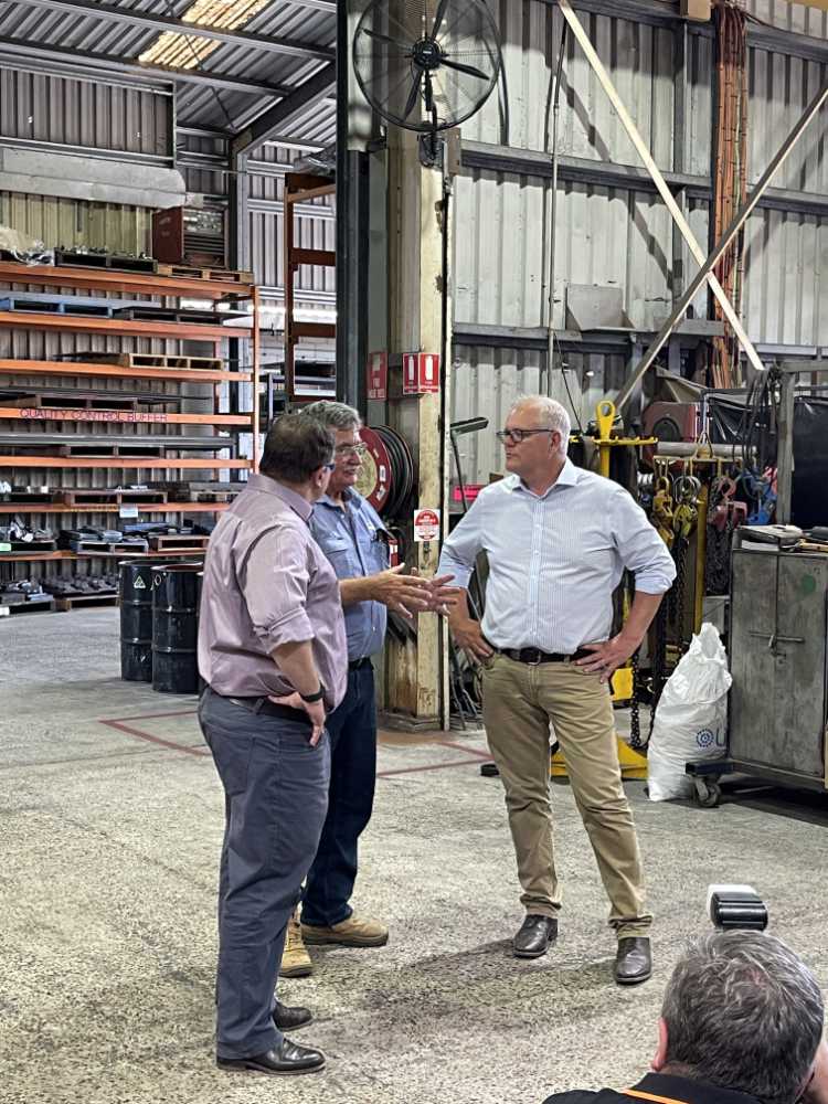 Defence industry manufacturing and supporting local businesses through the crushing COVID-19 downturn were key themes of the visit to Maryborough yesterday by Prime Minister Scott Morrison (ScoMo).