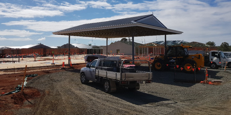 Over the past 8 weeks, the team in Maryborough have been engaged with the challenging installation and fabrication of 13 large gazebos for Croft Developments (pictured below). The 13 Steel Gazebos are located throughout the developing Signature Community Aged Care Home in Tinana, Maryborough, Queensland and is the most recent of various installation jobs completed by the team at GMG.
